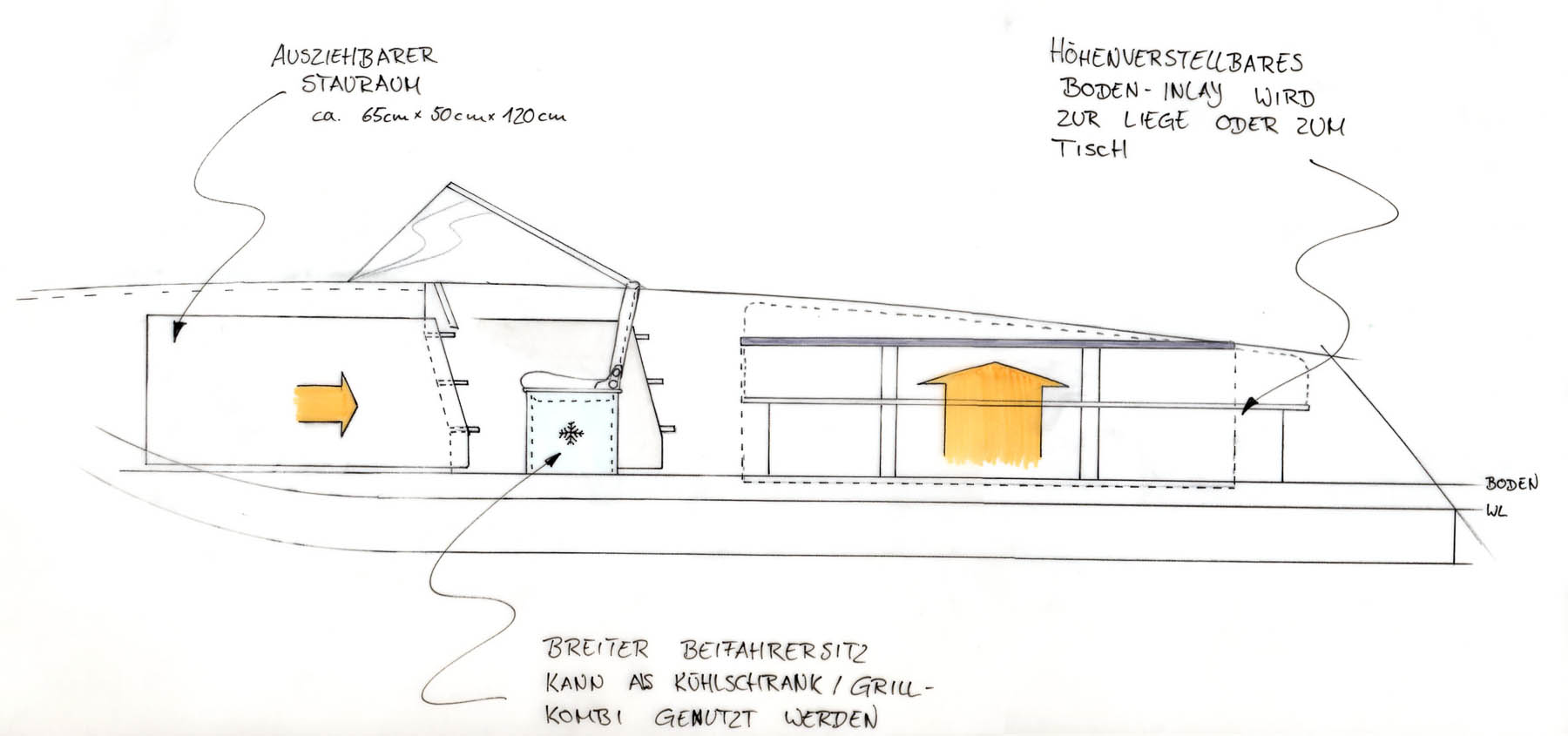Von der ersten Idee über Skizzen bis hin zu ausgearbeiteten Fertigungszeichnungen lassen wir Ihren Bootstraum wahr werden. Dieser Prozess läuft in folgenden Stufen ab: